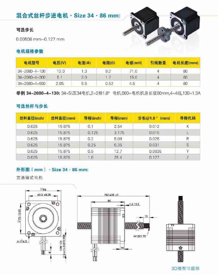 86mm系列混合式丝杆步进电机